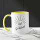 Tasse à café branchée, élégante et amusante qui dit "Coupe de Gratitude" dans la typographie moderne avec illustration de soleil fantaisiste sur la tasse à café à deux tons. Sur le dos est un espace facilement personnalisable pour un message personnel de Merci. Un cadeau d'anniversaire parfait pour votre bestie, petite amie, soeur ou maman. Disponible dans beaucoup plus de couleurs intérieures.