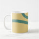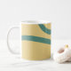 Abstract mug featuring flowing green lines on a bright yellow background. Cheerful and modern, it brings warmth and creativity to every sip.