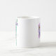 aquarelle traditionnelle et dessin à l'encre d'une grenouille de couleur violette escalade vers un arbre tout en regardant le spectateur sur une tasse à café