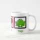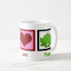 Adorable petite grenouille verte à côté d'un signe de paix et d'un coeur rouge. J'adore les cadeaux de grenouilles mignonnes.
