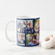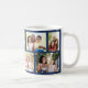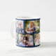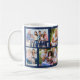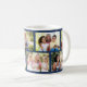 Tasse à café personnalisée avec une grille en maçonnerie tendance collage photo de vos propres photos. Le design a une couleur arrière - plan de bleu profond, que vous pouvez modifier si vous le souhaitez. (cliquez sur "customiser plus loin" ou envoyez-moi un message pour obtenir de l'aide). Le modèle photo est configuré pour que vous puissiez télécharger 8 photos de votre famille qui seront affichées dans un mélange de format paysage et portrait pour créer les briques de style maçonnerie.