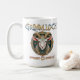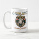 Start your day in the world of Grimmloch with this striking fantasy coffee mug featuring the official emblem of the narrative-based RPG by Opulent Code LLC. The detailed horned goat crest, set against rich teal and gold tones, creates a bold, immersive design that stands out with every sip.