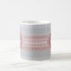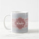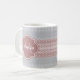 Un chic tasse motif rayée gris et rose pâle en maille avec un badge monogramme couleur rose cendré en quatrefoil. Personnalisez en ajoutant votre nom et votre initiale monogrammée. Il fait partie de la collection de monogrammes de Motif de knit de Harbour Mist Rose. Image à tirage plat, Dentelle NON tricotée.