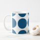 Cute et tendance Big Pois Mug. Ce design présente des pois grand cercle surdimensionnés en bleu et blanc. Un texte peut être ajouté à cette conception pour lui donner une touche personnelle.