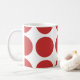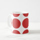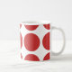 Cute et tendance Big Pois Mug. Ce design présente des pois grand cercle surdimensionnés en rouge et blanc. Un texte peut être ajouté à cette conception pour lui donner une touche personnelle.