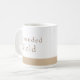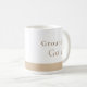 Clean white surface accented by a taupe band along the base and soft gold serif lettering reading “Grounded Gold.” The balanced layout and warm neutral tones make it well-suited for morning coffee, desk use, or open-shelf display in calm, modern kitchens and workspaces.