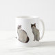 Les chats de Calico dans trois poses différentes décorent cette tasse de café pratique.
