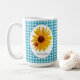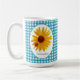 Mug Guingan de turquoise de tournesol de coccinelle