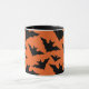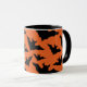 Cool, amusant et unique Halloween idée cadeau café tasse pour n'importe qui. Halloween chauves-souris volantes éffrayante silhouette motif de vacances. Hallow Eve troupeau de chauves-souris noires. Vous pouvez customiser la couleur orange.