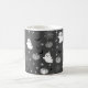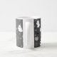 Foncé gris éffrayant fantôme Halloween tasse à café. Cette tasse présente des toiles d'araignée monotone, des fantômes, des citrouilles, des chauves-souris, des araignées, des feuilles, des cornes, des étoiles et des marguerites.
