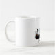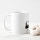 Une tasse à café éffrayante et amusante avec un design d'halloween déplaisant. Dans un cimetière sombre et effrayant. Une pierre tombale dit RIP, avec une bougie et des crânes brillants sur le sol. Une vieille clôture grinçante se penche sur le côté. Un adorable squelette souriant brille et des fantômes à l'air cool tourbillonnent dans l'air. Personnalisez avec un nom.