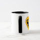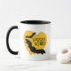 Mug Éffrayante et douce d'Halloween moderne avec des chauves-souris volantes au-dessus d'une lune en forme de coeur doré. Customisez ou personnalisez cet élément en modifiant ou en ajoutant votre propre texte.