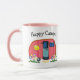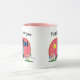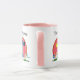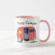 Combo tasse à café bicolore (rose et blanc ici) avec caravane vintage peinte du camp, fleurs et un joli visage ensoleillé.