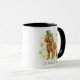 This adorable Irish Setter St. Patrick’s Day mug features a sweet watercolor-style dog wearing a green leprechaun hat and bow tie, surrounded by festive shamrocks and soft green accents.