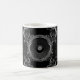 Haut-parleur audio noir sur un arrière - plan néon blanc