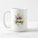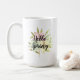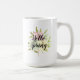 Jolie tasse à café printanière avec fleurs et feuilles pastel rose, jaune et vert pastel. "Hello Spring" est à l'avant-garde d'une jolie typographie.