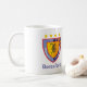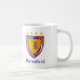 Emblazez votre nom de famille et votre initiale sur une crête héraldique colorée. Ce design présente des éléments qui parlent d'autrefois - dans les tons bleu royal, or et rouge, un bouclier et deux scimitars bordent un bouclier central pour afficher votre nom de famille initial. Des étoiles et trois têtes complètent le design. Une excellente idée cadeau de Fête des pères.