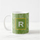 Motif Chevron Herringbone, Mug à café personnel vert de la forêt. Elégante, élégante et sophistiquée aquarelle zigzag dessinée à la main (chevron) motif en couleur vert forêt. Épicez votre café du matin au premier jour de l'Aïd Al-Fitr avec ce charmant motif d'os de hareng. Personnalisez en ajoutant vos initiales.