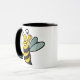 Une jolie abeille caricaturale avec un grand sourire joyeux saluant. C'est une illustration originale de ma part (pas une image clipart). Le motif est répété des deux côtés de la tasse.