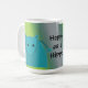 Un joli hippopotame bleu sur un arrière - plan bleu et vert ombragé. Admirez votre amour pour ce grand animal, l'Hippopotame sur cette tasse de café. Le dicton Happy as a Hippo peut être changé comme souhaité.