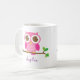 Une image mignonne d'un hibou rose girly avec de mini coeurs sur son ventre est étée perché sur une branche avec le feuille. Conception mignonne et d'amusement pour des filles ! Personnalisez avec le nom de l'enfant !