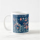 Restez diverti pendant que vous sirotez votre boisson chaude préférée avec cette tasse de café illustrée. C'est parce que cette tasse de café est en fait un jeu d'image amusant caché avec 9 illustrations d'objets familiers cachés dans un joli jardin. Le graphique en vert menthe, corail et crème ou ivoire est placé contre un arrière - plan bleu marine.