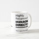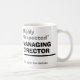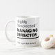 Gift mug for the Managing Director. The wording for the message says "Highly Respected Managing Director", with a postscript that reads, "Not open for debate". Gift for a manager, managing director, or head of a project or organisation.