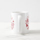 Ho ho ho tasse de Noël avec chapeau de Père Noël et ornements avec un type de script rouge.