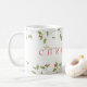 Des baies rouges et des feuilles saints décorent cette tasse de vacances. White arrière - plan et Holly peuvent être édités. Personnalisez-le. Super idée cadeau.