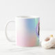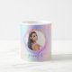 Un arrière - plan holographique, rose, violet, menthe, décoré de mousseux multicolores autour de la photo. Personnalisez et ajoutez une photo et un nom. Le nom est écrit avec un script de style écrit à la main avec des swashes. Pour que les swashes ne suppriment que le nom de l'échantillon, laissez les espaces ou émoticônes devant et après le nom.