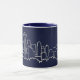 Caractéristiques de conception ce un croquis tiré par la main de l'horizon de Seattle sur un arrière - plan bleu-foncé.