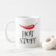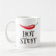 Hot Stuff drôle épicé cayenne piment rouge piment Coffee Mug. Conception de nourriture épicée avec modèle de typographie amusant. Ajoutez votre propre devis amusant en option. Idée cadeau de tasse personnalisée mignonne.