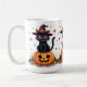 Profitez de vos boissons d'Halloween avec style grâce à cette tasse au design de chat noir et de citrouille ! Avec un charmant chat noir portant un chapeau de sorcière perché sur une citrouille sculptée, cette tasse ajoute une touche ludique et effrayante à votre café, thé ou chocolat chaud. Les couleurs vives et le thème charmant d'Halloween en font un cadeau parfait pour les amoureux des chats, les passionnés d'Halloween ou quiconque cherchant à ajouter une touche festive à leur collection de vaisselle. Que vous sirotiez votre boisson préférée pendant la saison d'Halloween ou que vous l'offriez à un ami, cette tasse est indispensable !