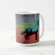 Avec un arc-en-ciel de couleurs pour l'arrière - plan, un loup hurlant avec des pins et le ciel bleu