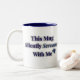 Cette tasse ne crie pas, elle spirale doucement. Avec un texte bleu et gris stylisé avec une icône de visage criant, on peut lire : "Cette Mug hurle silencieusement avec moi." Pour les matinées où le chaos est bruyant mais votre adaptation est silencieuse. Que vous soyez en train de siroter le stress ou de vous démêler en silence, cette tasse offre une solidarité céramique.