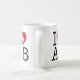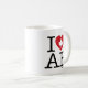Faites savoir à tout le monde combien vous aimez la ville de l'Alberta avec cette tasse personnalisable "I Love AB" avec typographie rétro et accent de coeur de feuille d'érable. Personnalisez en ajoutant votre nom. D'autres pays, États, provinces et villes sont disponibles.