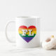 Cette tasse présente un coeur de fierté arc-en-ciel avec les lettres majuscules grasses, blanches, FL, l'abréviation officielle pour la Floride, l'état du soleil. Montrez vos vraies couleurs, soutenez l'égalité dans le mariage et célébrez le gay pride.