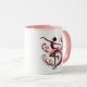 This ceramic coffee mug is shown with a sports ice skater art print.