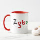 Une tasse igbo pan-africaine colorée, cette conception présente "Igbo" en noir, rouge et vert. L'intérieur de la tasse est rouge avec une poignée rouge correspondante. Customisez le vôtre aujourd'hui !