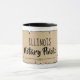 Faites de la publicité avec style et fierté à votre notaire public affaires. Fait un don réfléchi et pratique pour tout notaire professionnel qui fournit des services juridiques au public. Ce design de stylo et de rouleau de parchemin est présenté sur un arrière - plan de papyrus de défilement bronzé. D'élégantes caches de plume et des pots d'encre ancrent chaque extrémité du document. La tasse à café est facilement customisée en changeant "Illinois" en nom, ville, numéro de téléphone ou tout autre texte de votre choix.