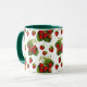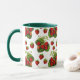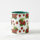 Tasse à café dans un tirage épars de fraises et de plantes de fraises adaptés à partir de dessins botaniques vintages - baies rouges profondes sur un arrière - plan blanc