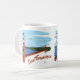 Une tasse pour n'importe qui qui aime San Francisco : caractéristiques de conception ce une illustration lunatique de golden gate bridge avec la Baie de San Franciso et la ville à l'arrière-plan. Un avion jaune vole au-dessus du pont remorquant une bannière avec le texte la "Californie" et une image de l'ours du drapeau d'état. Le texte "San Francisco" paraît dans en bas à droite dans une police espiègle et orange décrite dans le noir.