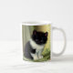 Coffee Mug avec un chaton tuxedo chéri ! Ce chaton noir et blanc pose à couteaux verts et rouges. Un cadeau merveilleux pour les amoureux de les chats et les amateurs d'art victorien !