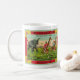 Grand étiquette publicitaire vintage avec un éléphant et deux girafes réutilisés sur une tasse à café. Whimsical, amusant très mignon !