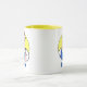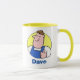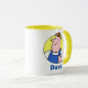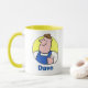 Fun Mug pour un Handyman, un homme de travail impair, ou un travailleur de maintenance qui a une image Handyman avec le nom. Des graphiques apparaissent de part et d'autre.