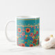 Une tasse à café chic à personnaliser, avec deux jolis motifs à mini-imprimés fleuris sur un arrière - plan turquoise. Faisant partie de la collection Posh & Painterly 'Granny Print', ce design peut être facilement ajusté pour s'adapter à n'importe quelle Mug.
