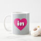 Cette tasse présente un coeur rose chaud vibrant contenant les lettres coques inférieures arrondies, blanches et audacieuses, une abréviation ludique pour Indiana, l'état hoosier.