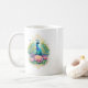 Die Farbenpracht eines Pfaus kombiniert mit der Reinheit des Lotus. Ein wunderschönes, detailreiches Design für eure morgendliche Tasse Tee oder Kaffee.