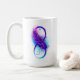 Infinity symbole with a beautiful feather painted in purple and blue bright colors on white background