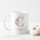 Cette élégante tasse à café présente un grand monogramme à la lettre "C" en faux or rose, orné d'un bouquet floral vintage ivoire agrémenté de feuillage vert et or rose. Personnalisez-la avec son nom en écriture manuscrite or rose, avec des fioritures au début et à la fin. C'est un cadeau parfait pour une demoiselle d'honneur ! Consultez notre boutique Ovenbird Designs pour les autres lettres de l'alphabet. (Pour conserver les fioritures, remplacez uniquement les lettres du nom.)